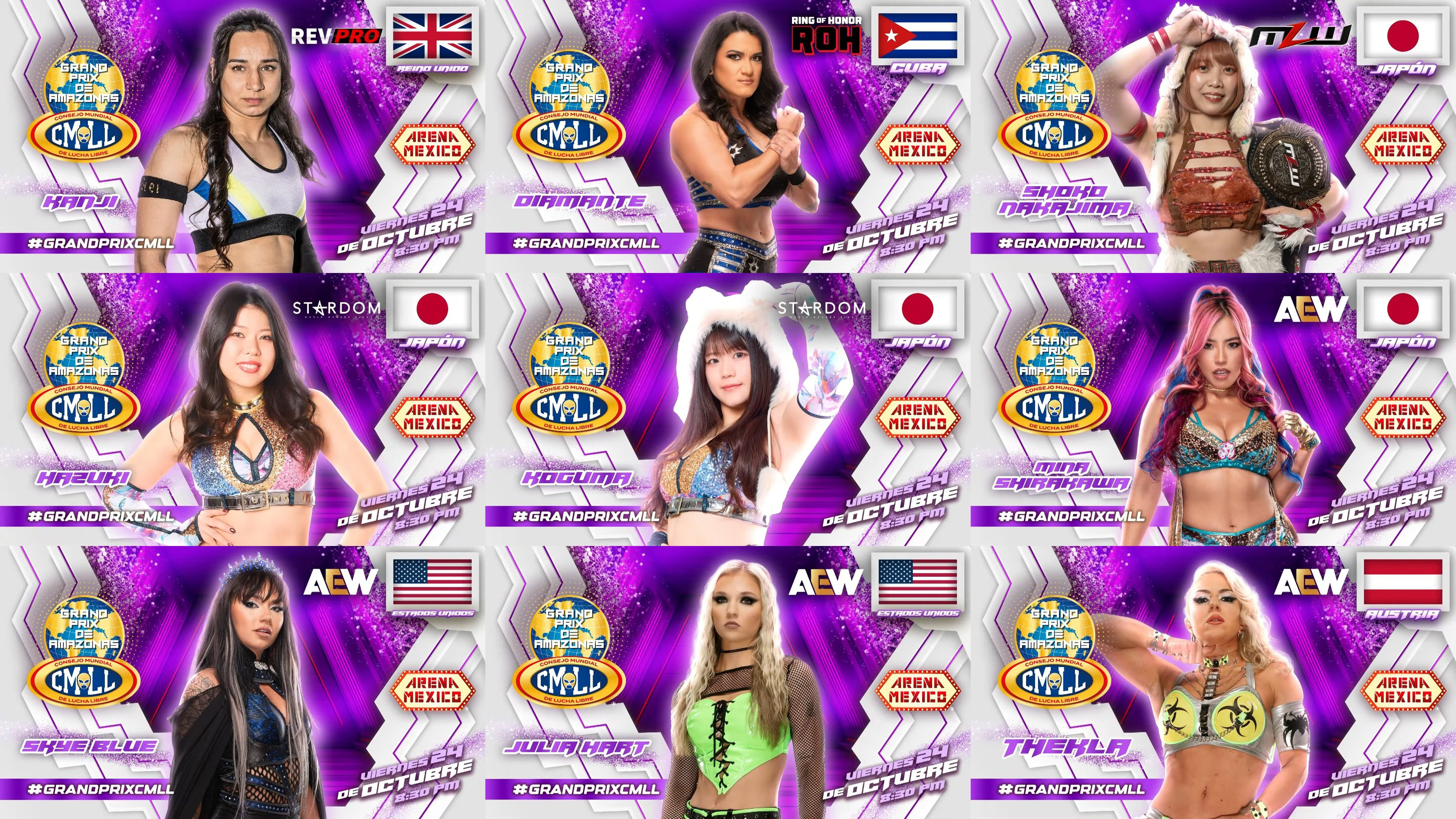 Rain Team World за женския Grand Prix: RevPro: Kanji 🇬🇧 ROH: Diamanté 🇨🇺 MLW: Shoko Nakajima 🇯🇵 STARDOM: Hazuki 🇯🇵 STARDOM: Koguma 🇯🇵 AEW: Mina Shirakawa 🇯🇵 AEW: Skye Blue 🇺🇲 AEW: Julia Hart 🇺🇲 AEW: Thekla 🇦🇹