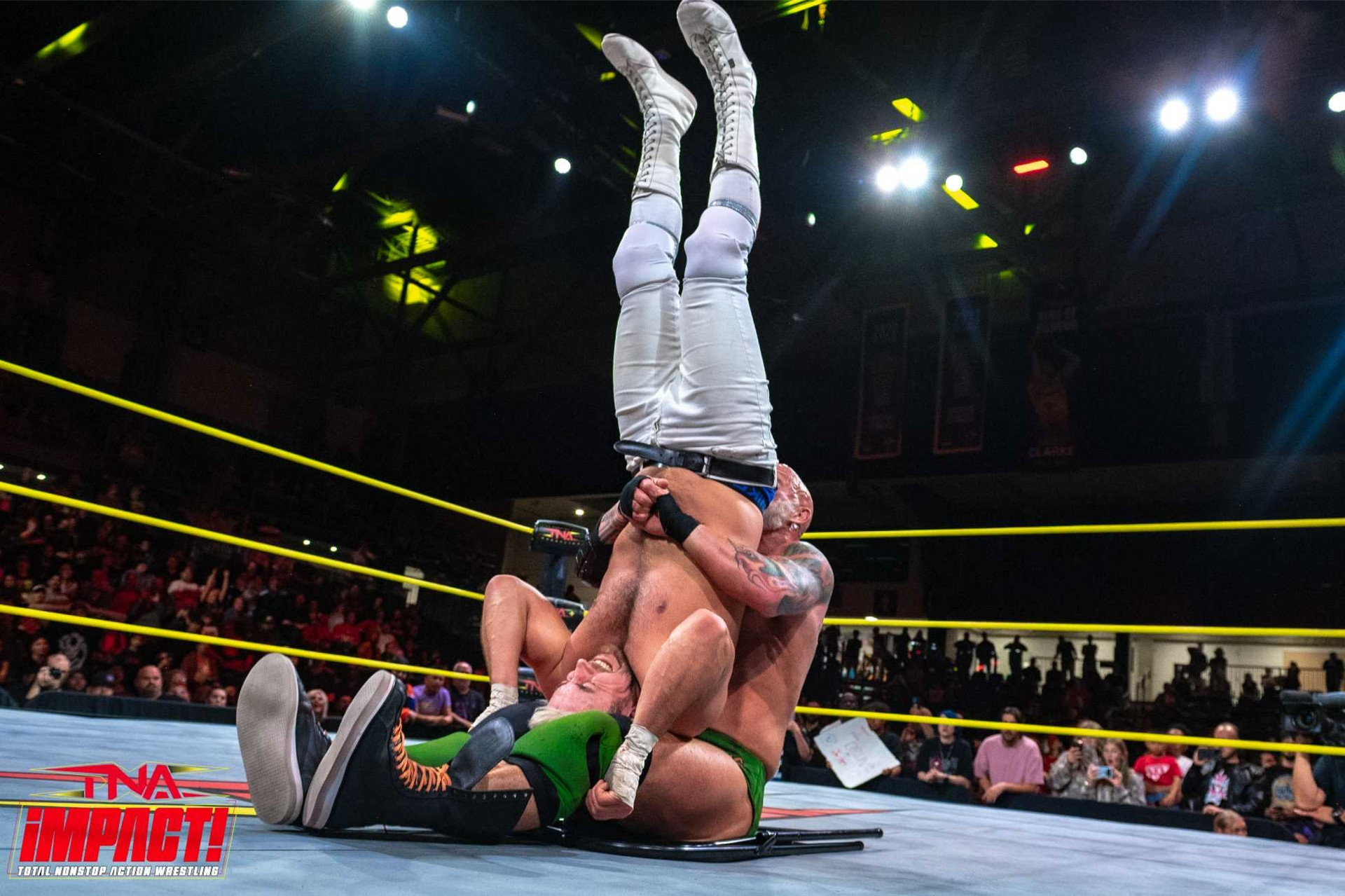 На ринга, Young уцелва мощен powerbomb и взима временно предимство. Icarus е близо до победата с top rope frog splash.